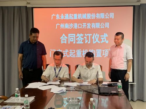 2023年6月07日,廣東永通起重機(jī)械股份有限公司與廣州南沙港口開(kāi)發(fā)有限公司在永通重機(jī)總部舉行門座式起重機(jī)購(gòu)置項(xiàng)目簽約儀式。